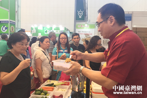 從臺灣精品館展出的石頭做成的紙、全球最輕的電動車,到農業(yè)精品館精美花卉和新鮮水果,再到臺灣原住民形象館中文化圖騰與現代生活相結合的文創(chuàng)產品等等,展出商品可謂種類繁多、琳瑯滿目。牛軋?zhí)恰ⅧP梨酥、臺灣高山茶這些傳統(tǒng)臺灣名品依舊受到民眾歡迎,此外文創(chuàng)產品和創(chuàng)新科技體驗也人氣滿滿。“臺灣精品館”僅2日上午半天,就接納了近3000名參觀體驗的市民。