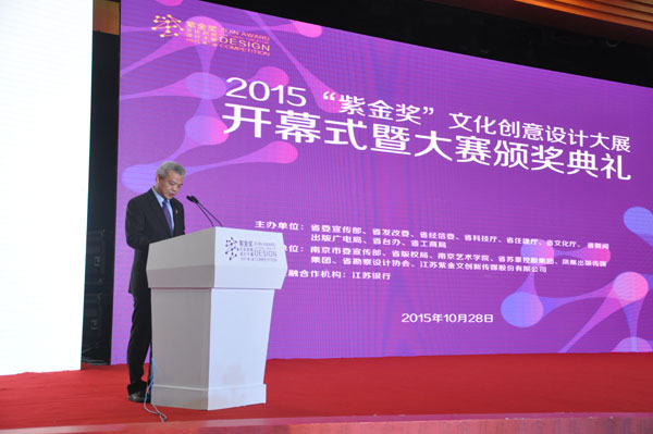 中國(guó)臺(tái)灣網(wǎng)10月29日南京訊 10月28日上午,“紫金獎(jiǎng)”文化創(chuàng)意設(shè)計(jì)大展開(kāi)幕式暨大賽頒獎(jiǎng)典禮在南京新莊國(guó)展中心舉行。省委常委、宣傳部部長(zhǎng)王燕文出席并啟動(dòng)開(kāi)幕按鈕,大賽主承辦單位領(lǐng)導(dǎo),臺(tái)灣文創(chuàng)產(chǎn)業(yè)聯(lián)盟榮譽(yù)理事長(zhǎng)李永萍等境內(nèi)外大賽評(píng)委會(huì)專家以及首屆大賽組委會(huì)大獎(jiǎng)獲得者為大賽金獎(jiǎng)獲得者頒獎(jiǎng)。