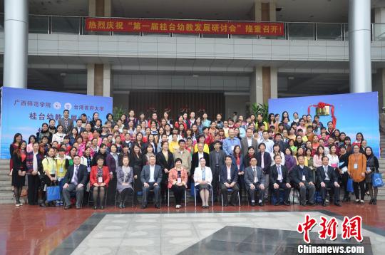 當日,來自廣西師范學院、臺灣首府大學、樹德科技大學、南臺科技大學等桂臺兩地共200余名幼兒教育專家學者、學生與會,并成立“桂臺幼教發展中心”,共同推進兩地幼兒教育事業發展。