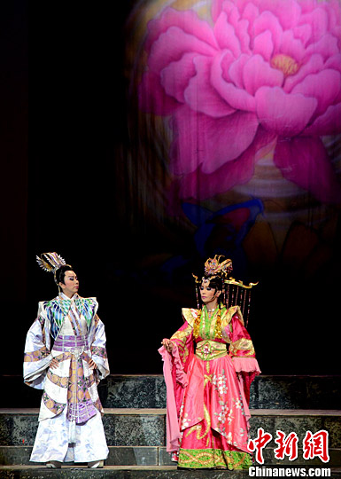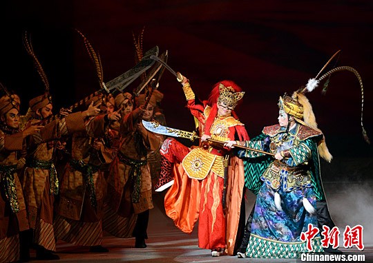 7月17晚,由臺(tái)灣明華園戲劇總團(tuán)演出的歌仔戲《貓神》在福建大劇院精彩上演。中新社記者 劉可耕 攝