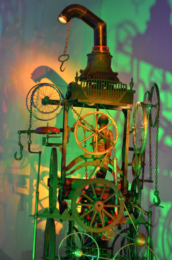 這個(gè)融合科學(xué)與藝術(shù)的奇特展覽由英籍俄裔機(jī)械雕塑大師Eduard Bersudky和英國(guó)一些知名的機(jī)械設(shè)計(jì)達(dá)人手工創(chuàng)作的50多件作品組成,除了精致的木雕,還有趣味表演秀、互動(dòng)空間和實(shí)驗(yàn)室等科學(xué)教育活動(dòng)內(nèi)容。記者們通過(guò)展覽,不僅能了解機(jī)械運(yùn)動(dòng)的工作原理,還可深刻領(lǐng)悟機(jī)械設(shè)計(jì)的核心魅力。