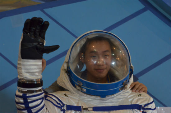 (圖二:記者現(xiàn)場(chǎng)體驗(yàn):感受航天服)