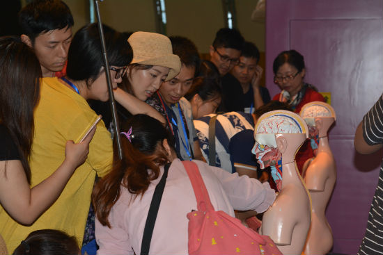 在參觀過(guò)程中記者們?nèi)褙炞ⅲS講解員全神貫注的認(rèn)識(shí)每一個(gè)未知的領(lǐng)域,有時(shí)碰到不太理解的地方,也會(huì)恰當(dāng)?shù)臅r(shí)候提出疑問(wèn),得到滿意的解答之后,則會(huì)滿足的點(diǎn)點(diǎn)頭。無(wú)論什么時(shí)候,無(wú)論我們離開(kāi)校園有多久,在碰到新知識(shí)時(shí),有趣的展覽模式、讓人蠢蠢欲動(dòng)的互動(dòng)方式、引經(jīng)據(jù)典的講解總會(huì)激發(fā)所有人探索的欲望。