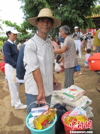圖為海南省臨高縣臨城鎮(zhèn)大波村委會(huì)豪堯村村民領(lǐng)取救災(zāi)物資現(xiàn)場。 付美斌 攝