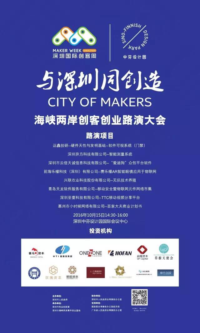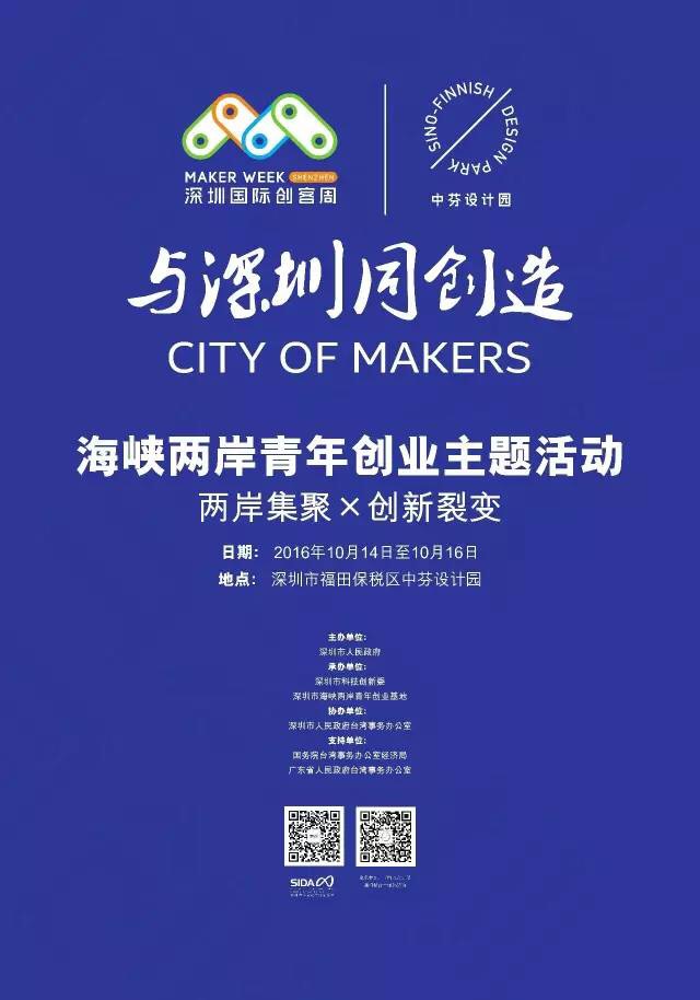 10.14 15:00-15:30第二屆深圳國(guó)際創(chuàng)客周海峽兩岸青年創(chuàng)業(yè)主題活動(dòng)啟動(dòng)儀式深圳中芬設(shè)計(jì)園