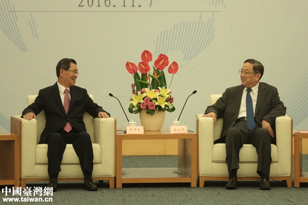 中國臺灣網11月7日廈門訊(記者 扶海濤)7日下午,中共中央政治局常委、全國政協主席俞正聲在廈門會見前來參加2016兩岸企業家峰會年會的臺灣方面理事長蕭萬長。