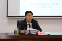 董利坤副處長結合工作實踐,緊扣黨政機關公文處理工作這一主題,從公文種類、公文格式和公文處理中的常見問題、應把握的重點環節等作了認真詳實的講解,給大家把握了規定、明確了標準、傳授了方法、解讀了迷津、懂得了技巧。