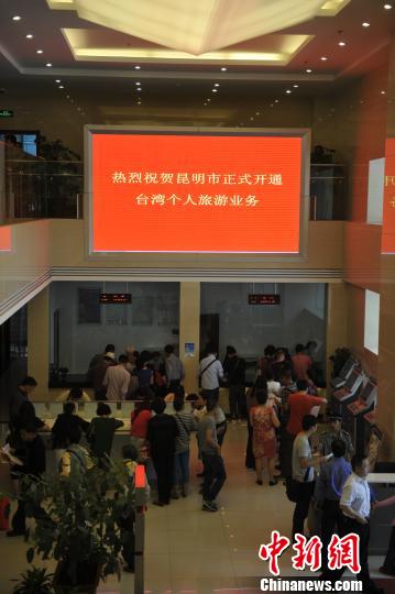 28日,昆明市正式啟動赴臺灣個人游,成為第三批大陸居民赴臺個人游試點城市。昆明市出入境管理局數據顯示,當日全市共246人次辦理大陸臺灣通行證,這一數據遠超大部分全國其他試點城市的首日申請量。昆明市民赴臺灣個人游熱情高漲。