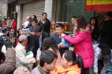華山街道辦事處位于五華區中心城區。近幾年來,中心城區城市化進程加快,許多沒有收入的低保戶人戶分離,雖然搬遷到安居房,但戶口仍然在主城區,卻沒有生活來源,靠政府的最低生活保障金生活。五華區臺辦了解到這個情況后,召集五華區臺胞臺屬愛心協會的部份成員積極籌集資金,對110戶低保戶進行節前慰問。經過熱心臺胞的參予,之前對辦事處提供的110戶低保人員進行入戶調查,落實生活情況及需要,并將資助物資提前運送到愛心超市。經過一周的積極準備,16號這天上午,華山街道辦事處召集資助對象來到五華區華山街道辦事處愛心超市門口,領取慰問物資。