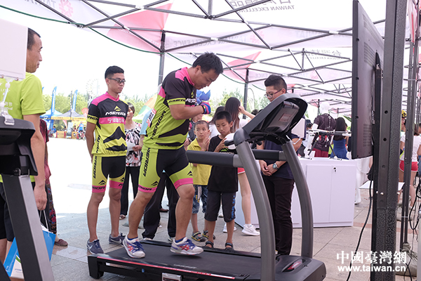 運動愛好者現場體驗“最前衛”的跑步機。(中國臺灣網 普燕 攝)