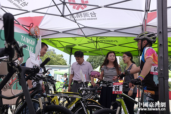 臺灣貿易中心與臺灣精品廠商美利達聯合主辦的2015“臺灣精品美利達杯”國際自行車賽也在同期舉行。圖為比賽現場。(中國臺灣網 普燕 攝)