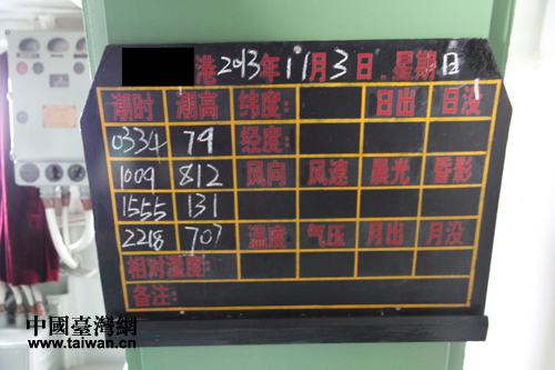 艙內(nèi)顯要位置記錄著每日潮汐信息。(中國(guó)臺(tái)灣網(wǎng) 馬迪 攝)