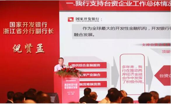 近日,浙江省臺資企業創業創新推進會在浙江嘉善舉行。會上,國家開發銀行浙江省分行副行長倪賢孟就該行支持臺資企業工作作了介紹。