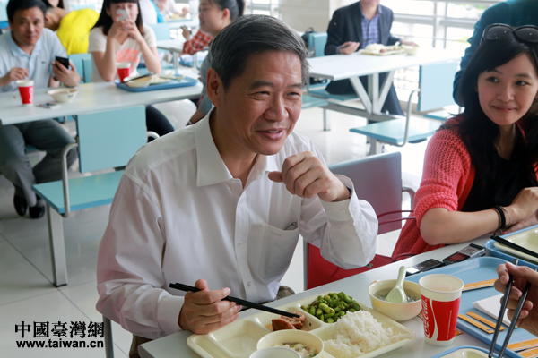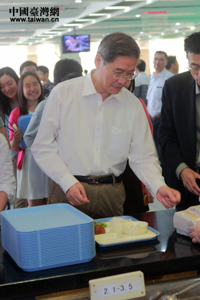 張志軍與臺灣學生一同排隊打飯(中國臺灣網 于斯文 攝)