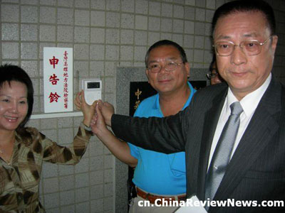 國民黨籍“立委”吳敦義(右)四日前往高雄地檢署按鈴控告前高雄市長謝長廷提供偽造緋聞錄音帶,致使選情逆轉(zhuǎn),涉嫌違反“選罷法”,為八年前高雄市長選舉恩怨討公道。(圖片來源:中評網(wǎng))