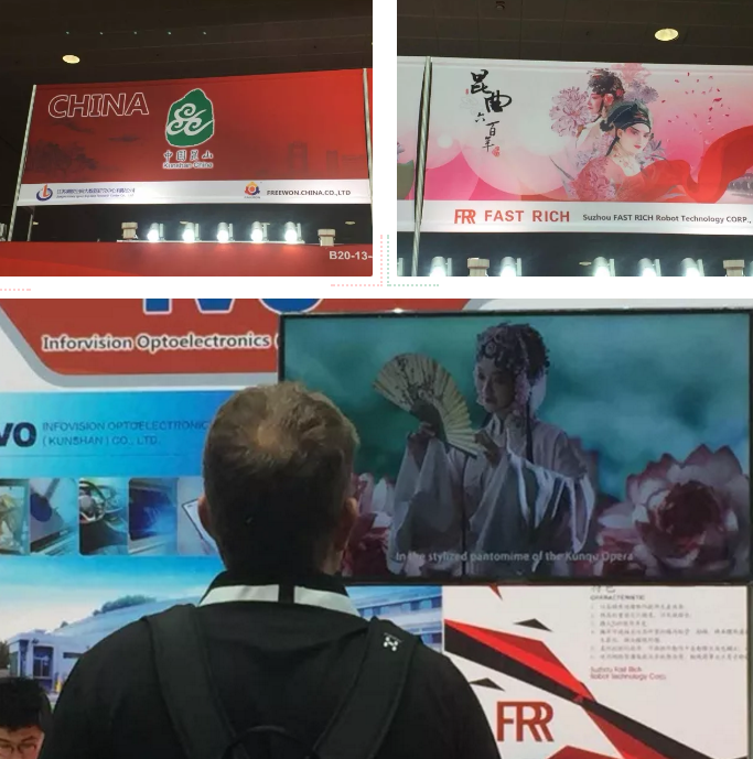 本次參展,昆山館以恢弘大氣的紅色作為背景,加入昆山元素形象設計,不僅展示了昆山企業的先進科技產品,還融入了昆山的文化瑰寶—昆曲元素,獨樹一幟的風格驚艷全場,“戲”與“經”相得益彰。