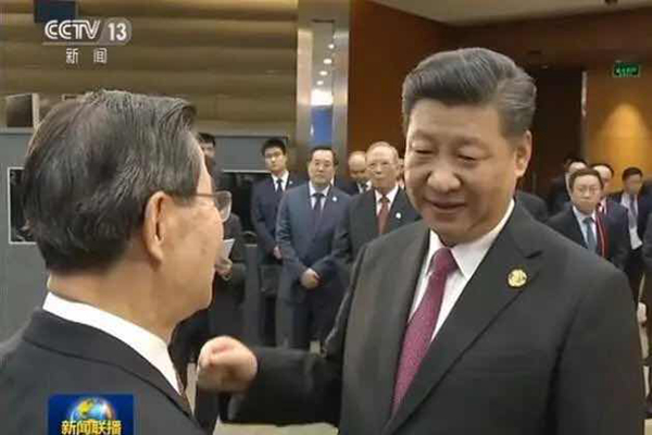 圖說:習近平總書記與蕭萬長會面時表示,祖國大陸的發展功勞薄上要記上臺胞、臺企一筆,希望在中國改革開放的浪潮中,兩岸同胞砥礪前行、同舟共濟。