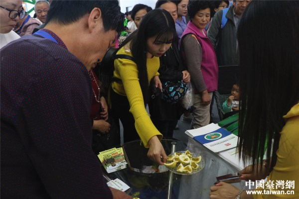 中國(guó)臺(tái)灣網(wǎng)11月1日長(zhǎng)沙訊 (記者 郜利敏)冰烤番薯、鳳梨酥、仙游甜柿、永福高山茶、百香果等一系列極具臺(tái)灣特色農(nóng)產(chǎn)品吸引了大批參展觀(guān)眾、經(jīng)銷(xiāo)商前來(lái)品嘗、購(gòu)買(mǎi)、洽談業(yè)務(wù)。海峽兩岸農(nóng)業(yè)合作展區(qū)也成為了第十六屆中國(guó)國(guó)際農(nóng)產(chǎn)品交易會(huì)(簡(jiǎn)稱(chēng)“農(nóng)交會(huì)”)中人氣最“旺”展區(qū)之一。