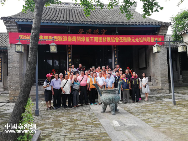 參訪團(tuán)一行在開漳圣王陳元光祖祠前留影。(圖片來源:固始縣臺(tái)辦)