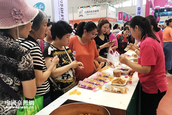 天津市民在臺博會品嘗臺灣美食。(中國臺灣網 趙苗青 攝)