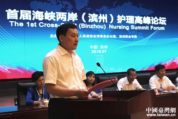 中國臺灣網7月12日濱州訊 7月6日至8日,首屆海峽兩岸(濱州)護理高峰論壇在濱州成功舉辦。濱州市委常委、常務副市長趙慶平,市政協副主席吳國瑞,國家衛生計生委人才交流服務中心副主任胡榮波,山東省臺辦副主任齊子明等領導出席有關活動。來自臺灣護理學會專家學者、臺灣醫養、健康照護產業代表、臺灣醫療機構、研究機構、管理機構專家學者和中華護理學會、中國職業技術教育學會、全國衛生職業教育教學指導委員會200余名專家、學者、青年學生、企業家參會。