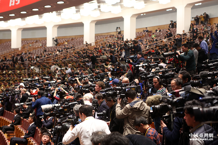 中外記者報道中國共產黨第十九次全國代表大會閉幕會。(中國臺灣網 于斯文 攝)