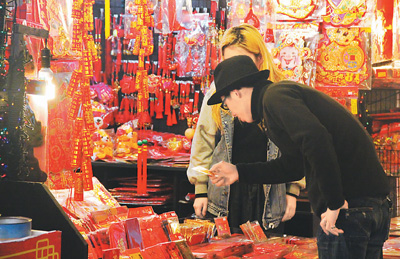 農(nóng)歷新年將至,為了方便民眾置辦年貨,臺(tái)北傳統(tǒng)年貨大街——迪化街2月1日火熱開賣。本次年貨大街熱賣的時(shí)間為14天,商家準(zhǔn)備了糖果、海鮮、干貨、飲品等各種產(chǎn)品供臺(tái)灣民眾挑選,現(xiàn)場(chǎng)紅燈籠及各種裝飾,呈現(xiàn)著喜氣洋洋的氣氛。圖為商家在準(zhǔn)備商品。(柴逸扉 攝)