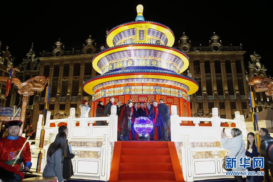 2月22日,在比利時首都布魯塞爾大廣場,嘉賓參加元宵燈展亮燈儀式。22日晚,璀璨奪目、中西合璧、別具一格的中國彩燈點亮了“歐洲心臟”布魯塞爾的大廣場,拉開了中國元宵燈展的帷幕。此次元宵燈展是2018中歐旅游年的重頭活動。新華社記者葉平凡攝