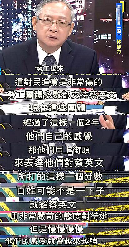 國(guó)民黨民代林郁方也表示,經(jīng)過(guò)民進(jìn)黨2年的執(zhí)政,曾支持蔡英文的勞工團(tuán)體經(jīng)過(guò)切身感受后選擇上街抗議,“這對(duì)民進(jìn)黨是非常傷的”。