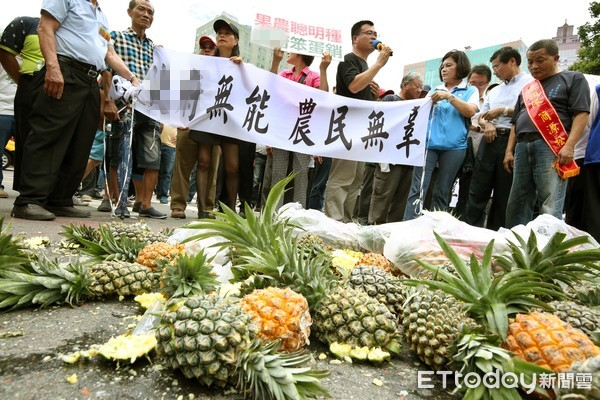 據(jù)報(bào)道,菠蘿價(jià)崩,目前南部產(chǎn)地收購(gòu)價(jià)竟剩不到5元(新臺(tái)幣,下同),雖然“農(nóng)委會(huì)”已提出補(bǔ)助拯救產(chǎn)地價(jià),但仍難平怒火。果農(nóng)號(hào)召300人北上怒喊“賴清德下臺(tái)、林聰明下臺(tái)”,一路從“立法院”游行至“行政院”砸菠蘿抗議。