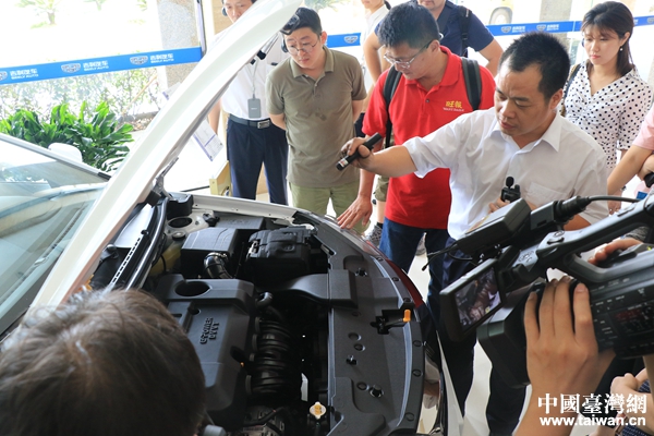 兩岸媒體記者聽工作人員介紹吉利汽車。(中國臺灣網 李奕均 攝)