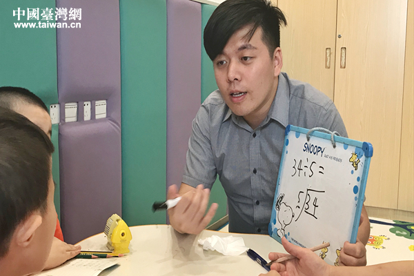 林上哲在昆山市福利院兒童部教學。(昆山市臺辦供圖)