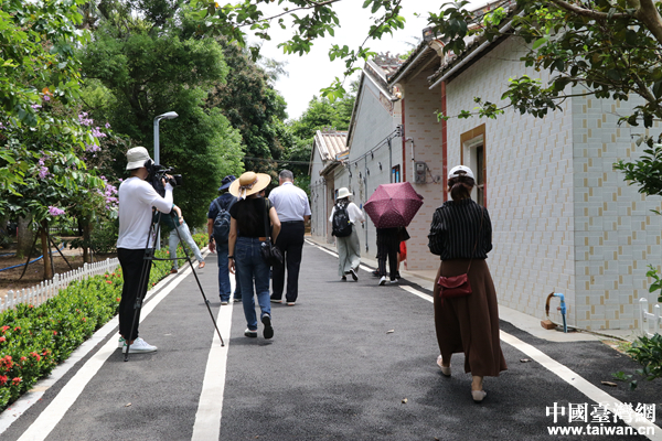 “海峽兩岸記者特區行”采訪團走訪文昌市龍樓鎮好圣村。(中國臺灣網 尹賽楠 攝)