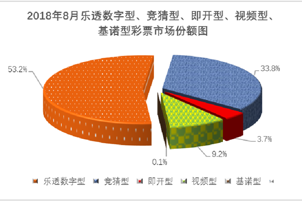1-8月累計,樂透數字型彩票銷售1827.65億元,同比增加118.92億元,增長7.0%;競猜型彩票銷售1129.60億元,同比增加572.06億元,增長102.6%;即開型彩票銷售146.64億元,同比減少17.30億元,下降10.6%;視頻型彩票銷售311.77億元,同比增加4.76億元,增長1.5%;基諾型彩票銷售0.89億元,同比減少0.40億元,下降31.3%。1月至8月份樂透數字型、競猜型、即開型、視頻型和基諾型彩票銷售量分別占彩票銷售總量的53.5%、33.0%、4.3%、9.1%、0.1%。