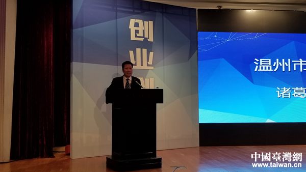 溫州市政協副主席諸葛啟釧在大會現場致辭。(中國臺灣網 齊昕 攝)