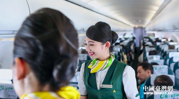 臺灣乘務員機上工作。(圖片來源:上海市臺辦)
