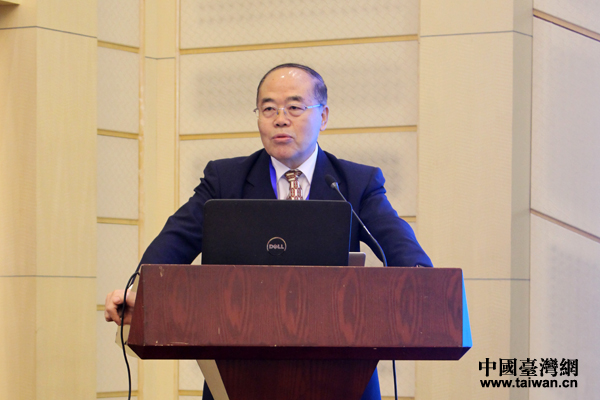 全國臺灣研究會常務理事、上海國際問題研究院特聘研究員周志懷發表主題演講。(中國臺灣網 張潔 攝)