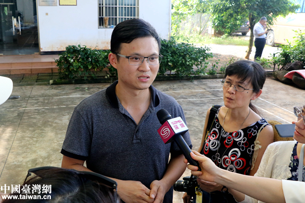 黃益豐長子、金德豐農業開發公司副總經理黃溶浩接受采訪。(中國臺灣網 尹賽楠 攝)