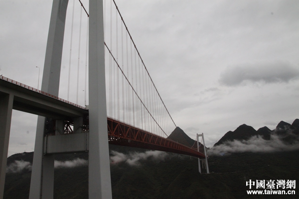 貴州省高速集團總工程師梅世龍為兩岸媒體人詳細介紹了壩陵河大橋,貴州數座世界級橋梁建筑的設計與建造都有他的參與。梅世龍說道,貴州省作為全國唯一沒有平原支撐的省份,在高速公路攻堅決戰過程中,“逢山開路,遇水搭橋”,所建橋梁覆蓋了梁橋、拱橋、懸索橋、斜拉橋等結構形式,幾乎包攬了當今世界上的所有橋型,“我們力爭在貴州省內建立‘高速平原’,讓貴州交通‘如履平地’”。