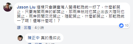 這就讓很多臺灣同學搞不懂了。于是,便有了本文開篇那個截自臺灣臉書的臺灣網友的留言,一位網友抱怨臺當局“什么都禁止,干脆統一好了”,另一位深表同感地說“真的是如此”。