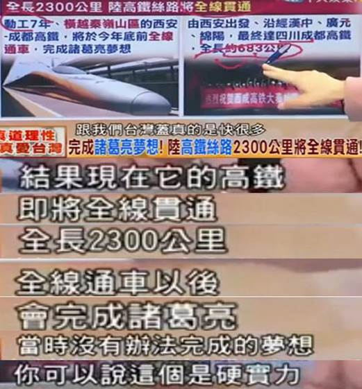 如今大陸高鐵的發(fā)展可以說為世界的聯(lián)通帶來了便捷,雖然一些心懷叵測的“臺獨”分子有意抹黑,但仍不乏理智的民眾客觀評價,比如有臺灣媒體在評價橫越秦嶺山區(qū)、全長2300公里的蘭渝鐵路時就贊它“完成了諸葛亮的夢想”:
