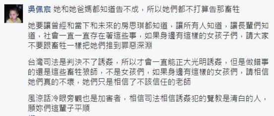 接著控訴了臺灣教育者,稱其善于利用職權誘導處于愛情萌芽期的學生: