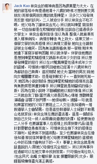 也有人爆出了所謂林奕含的“真正死亡真相”: