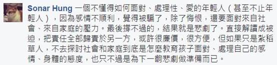 侃爺認為,在林奕含的事件中,也許與其揪著所謂的“真相”不放,不如像下面這位網友所說的那樣,多去探討下社會和家庭到底應該怎樣教育孩子面對和處理自己的感情與身體,以免下一個“林奕含式悲劇”的再發生。