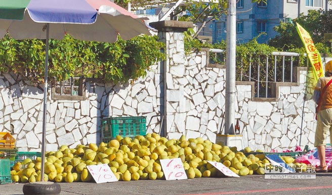 花蓮市出現一顆5元(新臺幣,下同)、12顆50元文旦柚的“流血價”。(圖片來源:臺灣《中時電子報》)