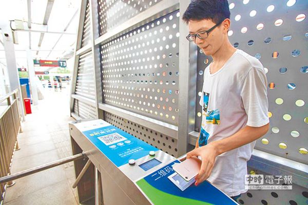 武漢BRT武昌站,乘客刷手機搭車。(圖片來源:臺灣《中時電子報》)