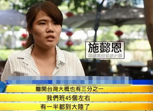 臺當局還有一項統計的數據顯示,到2015年,在約有1000萬人的臺灣勞動力中,超過72萬人的目光不再局限于臺灣,將找尋更好工作機會的目標看向了大陸以及其他國家,其中更有72.5%的人擁有大學以上學歷,他們中有的說在臺灣工作看不到機會和未來: