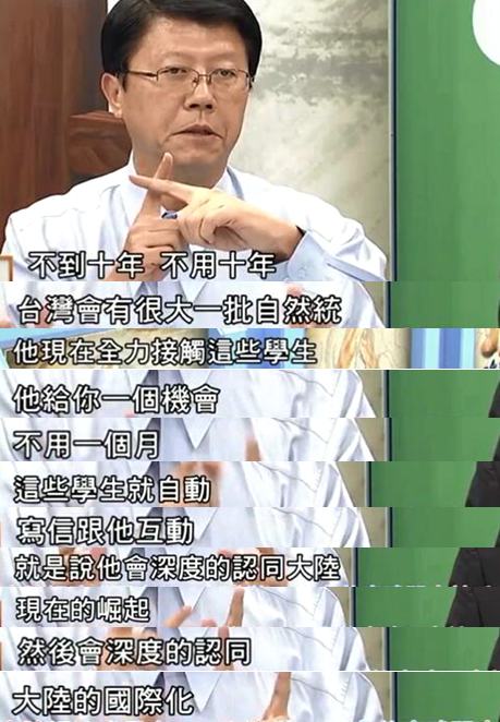 國民黨“中常委”謝龍介對此更表示:不用10年,臺灣會有一大批“自然統”,因為這些與大陸接觸過的臺灣學生會愈發深刻的認同大陸的崛起以及大陸的國際化。