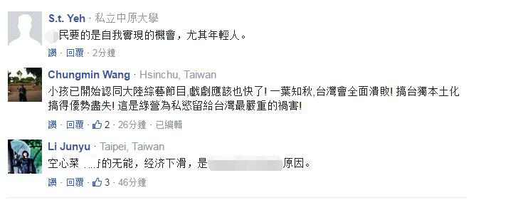 更有網友表示:臺灣的未來在大陸!仇視大陸或與大陸對抗,臺灣是“以卵擊石”,最終受傷的是臺灣自己。