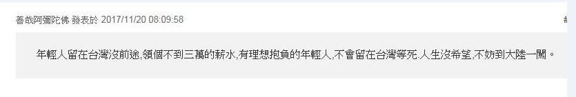 臺灣網友也給出了解釋,臺灣被“空心菜”搞得虛無縹緲,大陸卻是一片熱火朝天:“綠營”為私欲而搞“本土化”,結果令臺灣優勢盡失,經濟嚴重下滑,找工作也越來越難,有理想有抱負的臺灣青年與其在臺灣“等死”,不如到大陸求發展。
